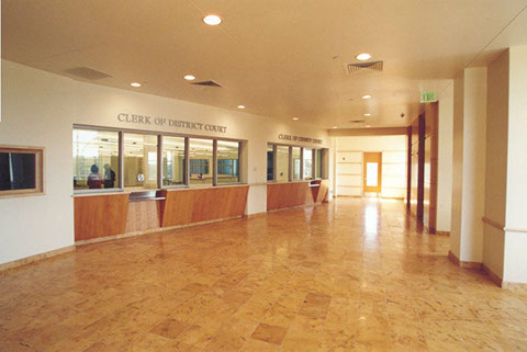 The Courts/Office building includes 2 District Court courtrooms, 1 County Court courtroom, a Magistate Hearing/Jury Assembly room, Judge and Magistrate chambers, Jury Deliberation suites, and offices for: Court Administration, the Clerks of Court, Probation, District Attorney, County Coroner, and Sheriff’s Law Enforcement.