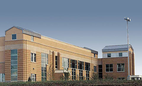 The Courts/Office building is connected to a 110-bed Detention Center via a ground level “link” that includes mechanical rooms, inmate elevator, and garage for the Sheriff’s emergency response vehicles.Inmates are moved between the Detention Center and the Courts/Office building via a below grade, secure corridor. Inmates are moved to the courts floors in inmate elevators, and are then held in Holding Cells adjacent to the courtrooms.