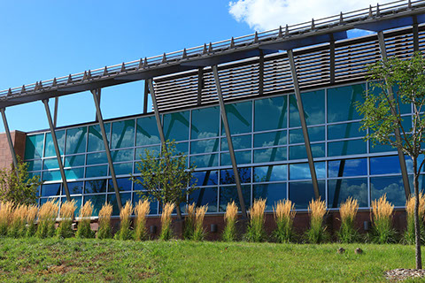 Photovoltaic panels on the south elevation of the building addition will power the air handling equipment and serve as a sun shade for south facing glass.
